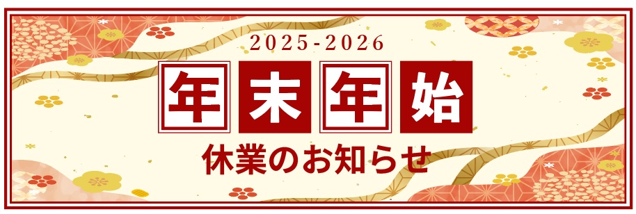 ■年末年始休業期間2025年12月27日(土) ~ 2026年1月4日(日)